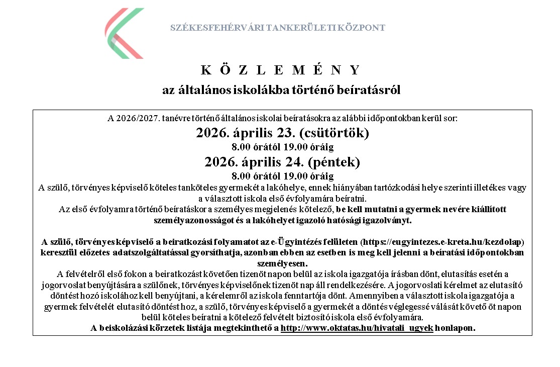 Beiratkozás az iskola 1. osztályaiba a 2023/2024. tanévre
